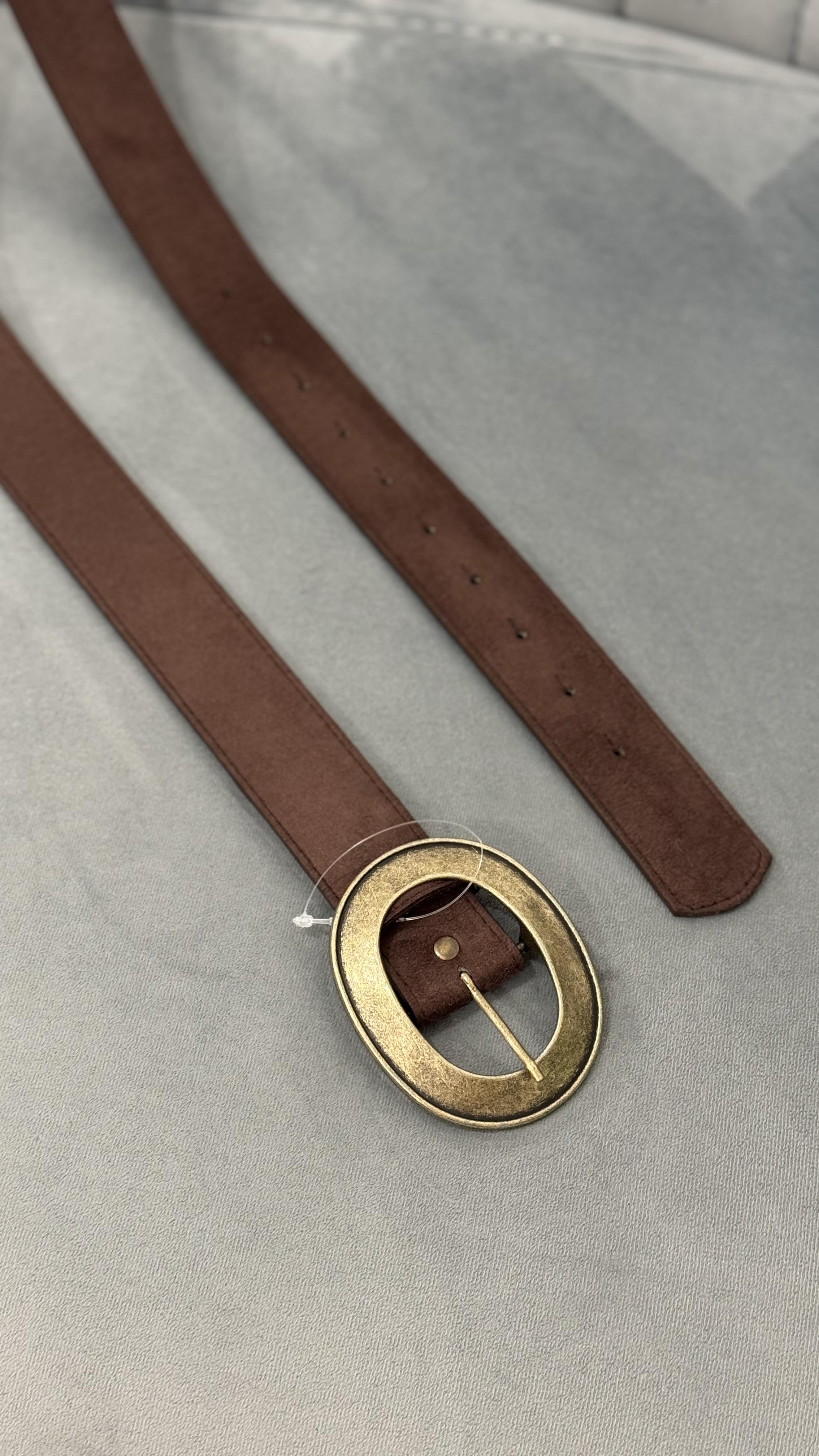Acı Kahve Eskitme Tokalı Süet Kemer
